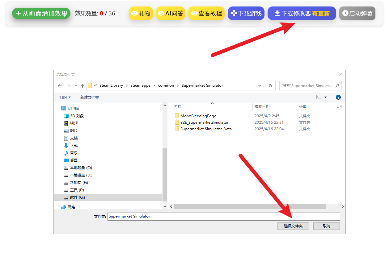 下载说明:点击下载修改器会打开文件夹,你需要选择游戏的根目录,怎么查看根目录请看下面的教程