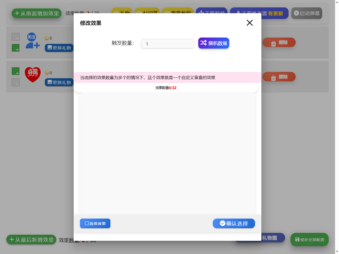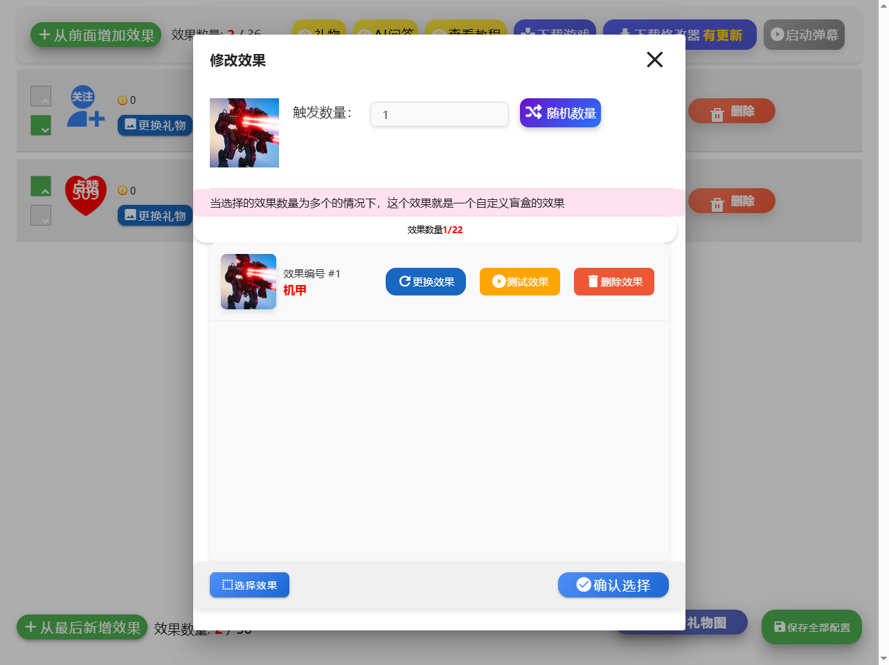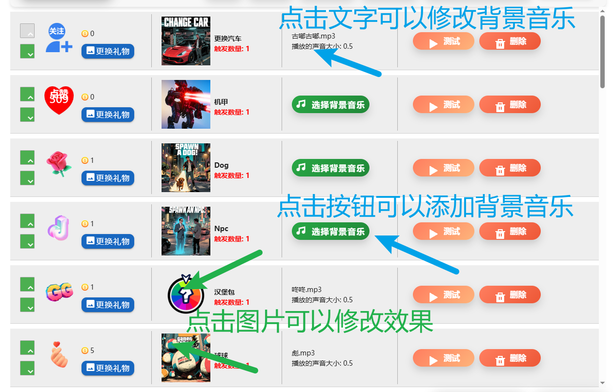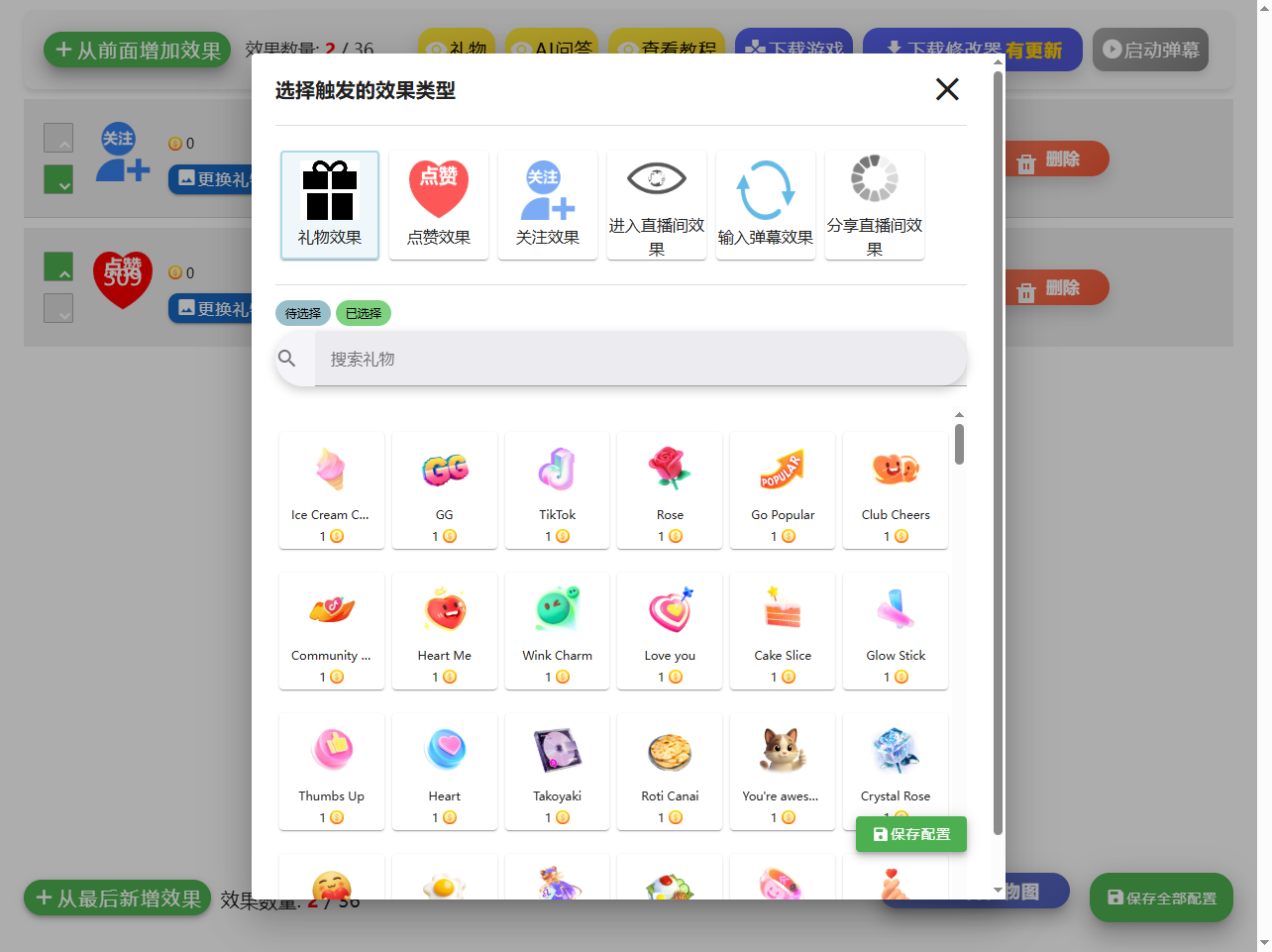 修改礼物:点击可以修改礼物和选择点赞 或者 关注效果