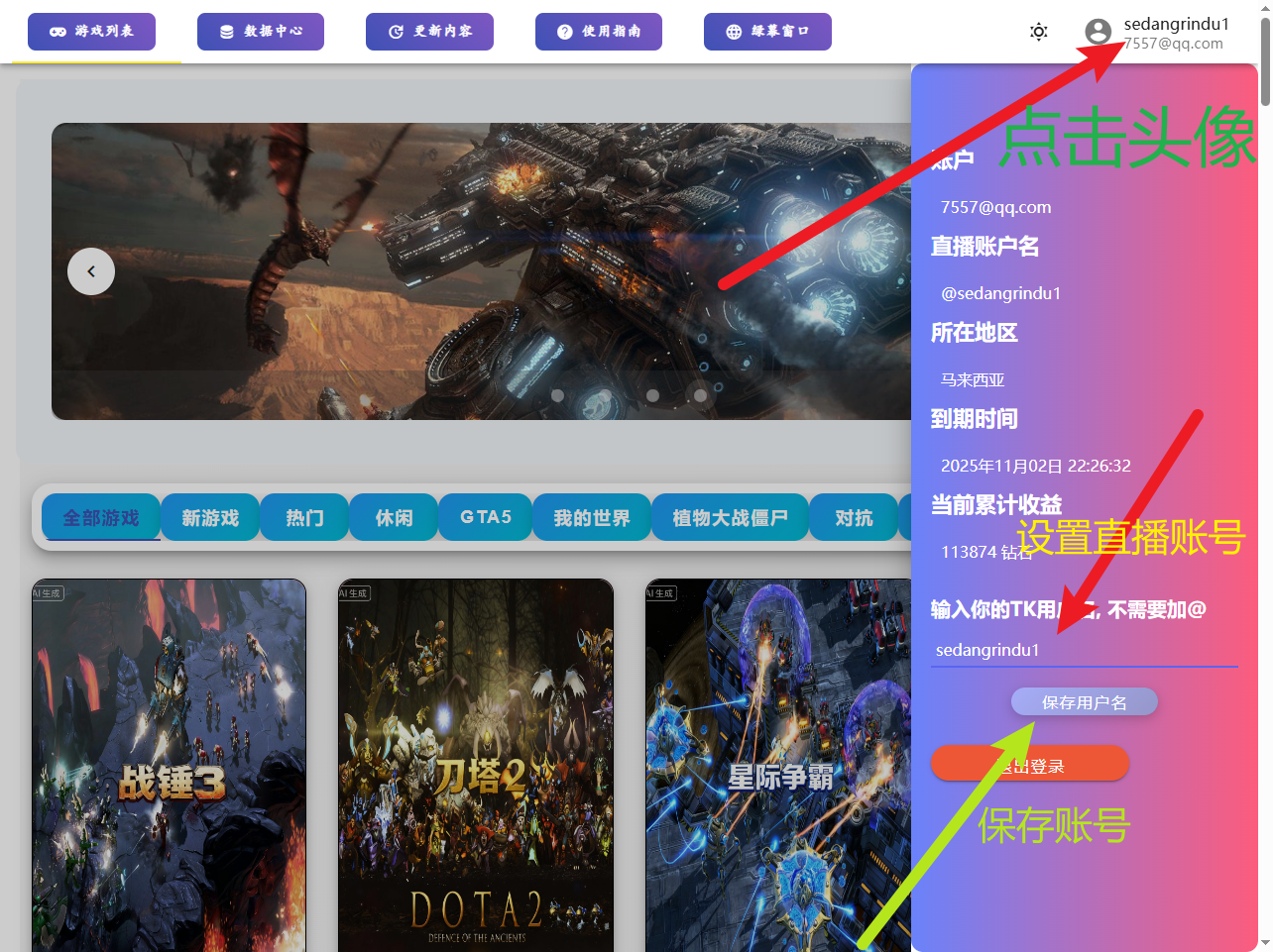设置说明:启动弹幕前一定要设置直播账号,否则获取不到弹幕