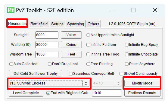 When PvZ preset is active §³lick on PvZ set up button above TikTok connect section This will modify game to endless survival day level. If you need some other options like bowling mode you can modify it trainer.